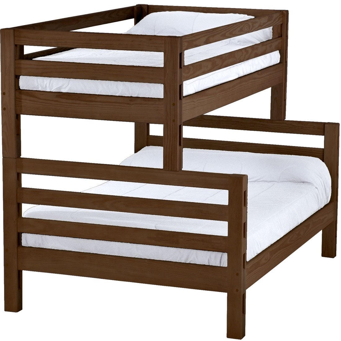 The sturdy, wide ladder ends make it easy for kids to climb up and down. Full length removable guardrails are included for both sides of the upper bed. Options include extra-long for big kids and a taller version to allow 8” more headroom under the bed for comfortable seating. Can be separated into 2 beds or set up as a loft.