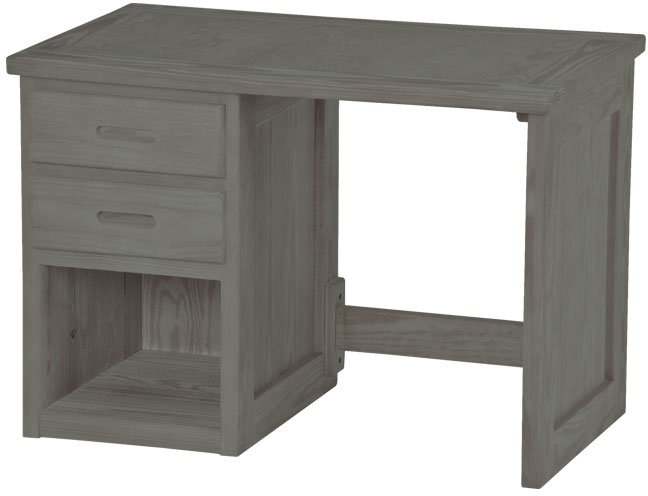 A compact desk with 2 drawers and an open shelf to keep everything organized. Consider adding a lacquer finish on the top for increased moisture resistance and easier cleanup of spills. Add a desk shelf for more storage.Read More