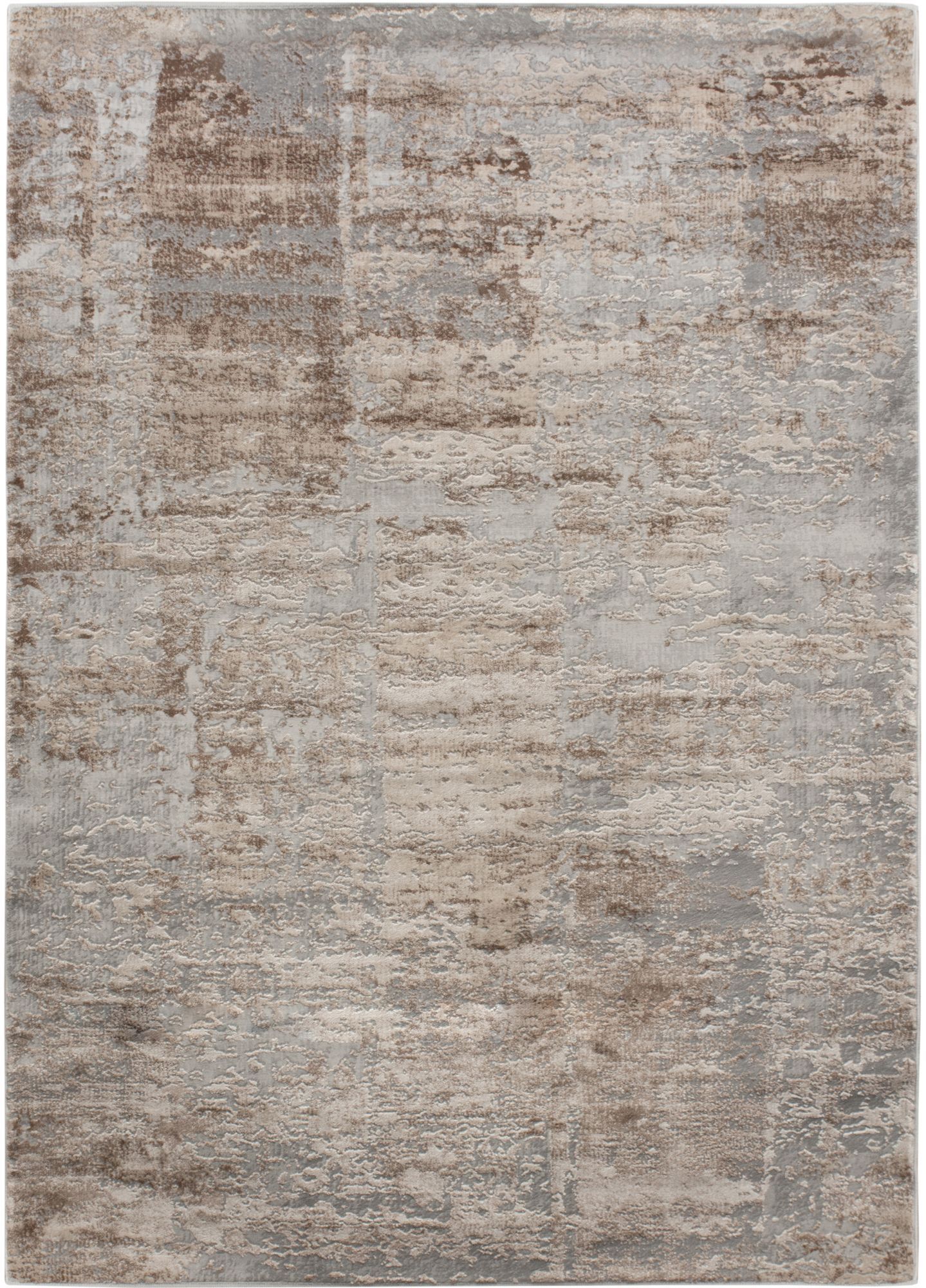 Smooth serene vibes wash over the contemporary living or bedroom space with this rug. Composed by a power loom, it has a silky, inviting quality. Featuring grey and brown coloring, it proves that muted tones can make a bold impact.Read More