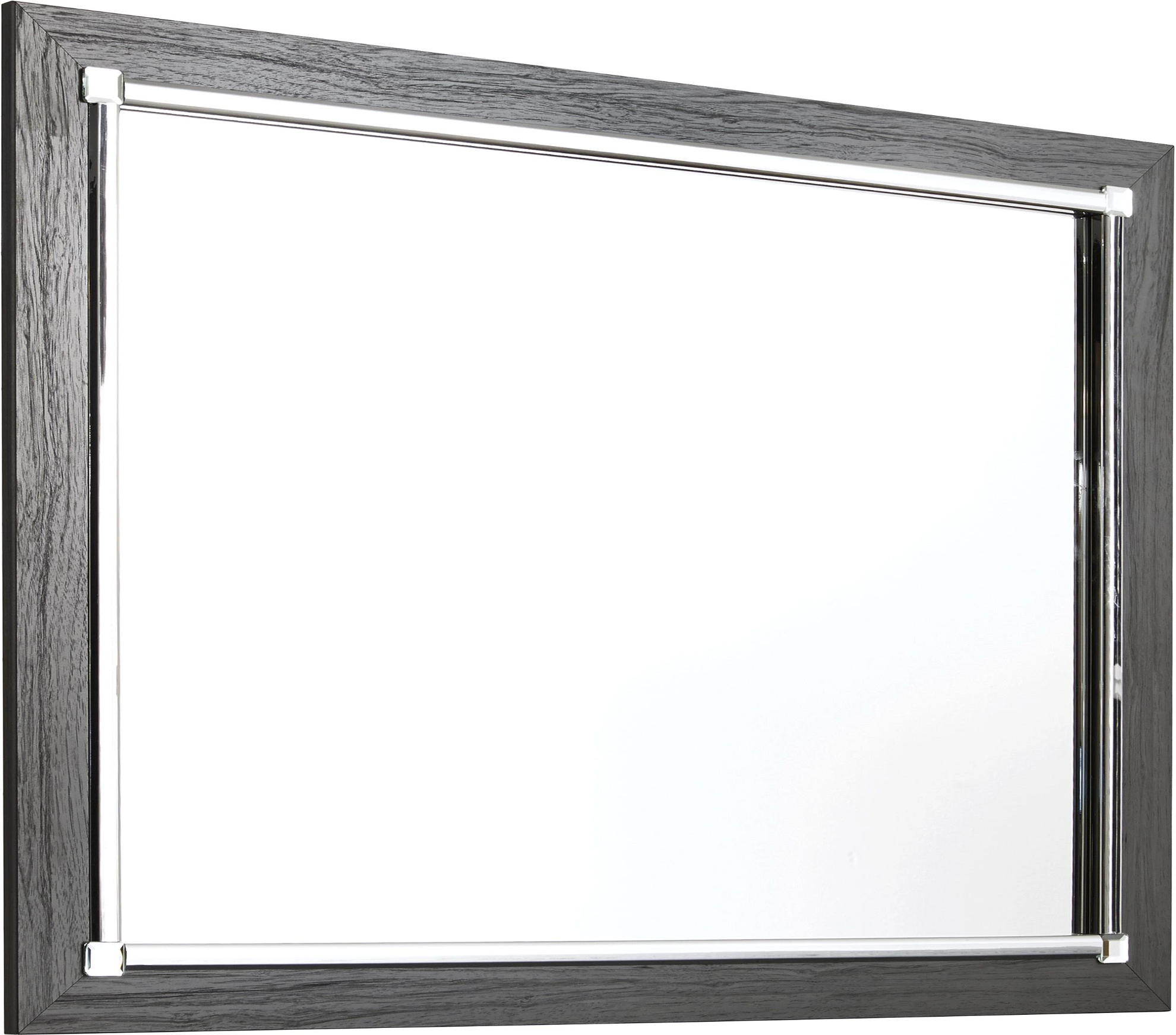 Reminiscent of Hollywood glamour of yesteryear, this mirror interprets luxury in a decidedly modern way. A dazzling gray finish and faceted chrome-tone accents enhance the star power. This mirror's ability to hang vertically and horizontally makes it a truly versatile piece.Read More